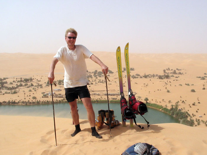 Skiausrüstung auf Dünengipfel neben Gabron See